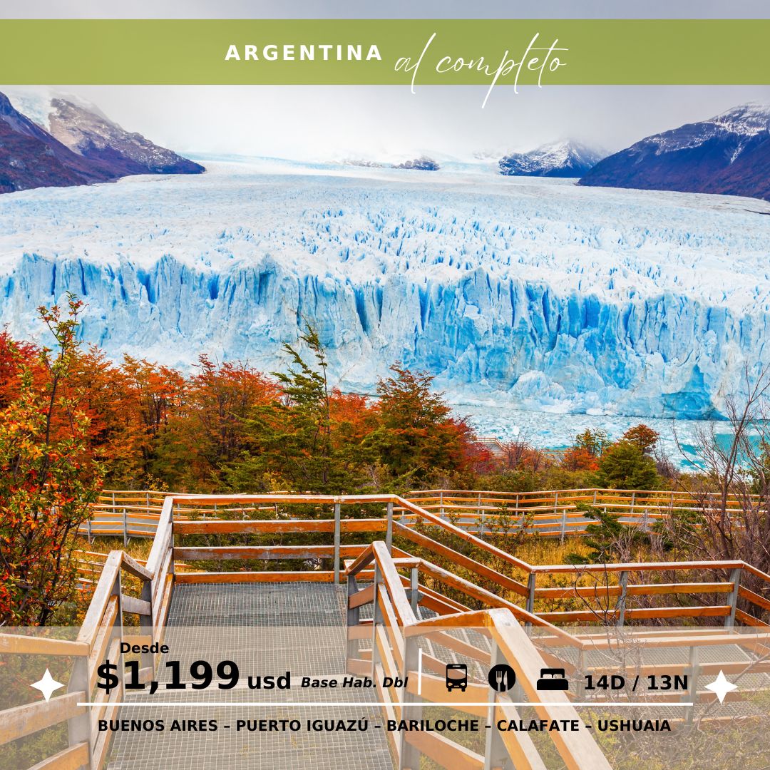 Desayuno. Partiremos en traslado desde su alojamiento hasta el Parque Nacional de los Glaciares, disfrutando durante el camino de los paisajes típicos de la estepa patagónica. Al ingresar al parque, realizaremos paradas en miradores estratégicos para apreciar vistas panorámicas del majestuoso glaciar. Durante todo el recorrido nos acompañará un guía habilitado por el Parque Nacional, quien compartirá información sobre el entorno natural, la historia y el encanto único de este impresionante monumento de hielo, dispondremos de tiempo libre para recorrer los circuitos y senderos del Glaciar Perito Moreno. Sus constantes desprendimientos y el estruendo de los bloques de hielo cayendo al agua crean un espectáculo natural incomparable. Regreso al hotel y Alojamiento.