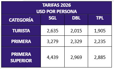 Considerar horario de traslado entre 05:00 am y 20:00, aplica suplemento fuera de éste horario.