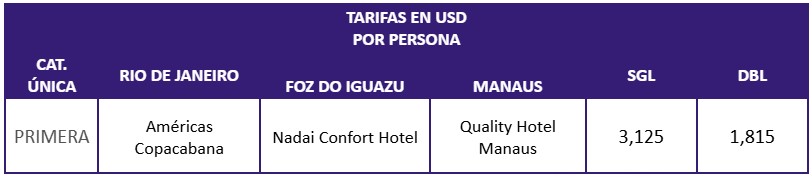 Desayuno. Con la debida anticipación, traslado de salida al aeropuerto, para vuelo nacional con destino a Foz. Llegada, recepción y traslado al Hotel de referencia. Tarde libre. Alojamiento.