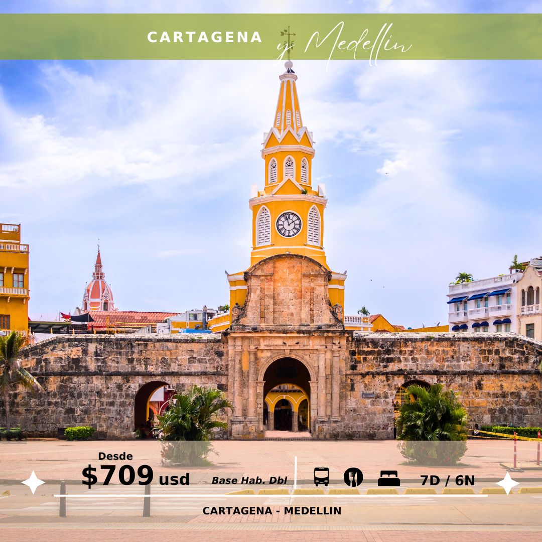 Desayuno. Recogida en el hotel para iniciar recorrido a los principales monumentos de la ciudad colonial, como el Castillo de San Felipe, Casa Museo san Pedro Claver con caminata al pie del «Corralito de Piedra» acompañado por un guía profesional, para vivir una mágica experiencia paseando por sus callecitas y plazas con sus balcones coloniales, luego continuarán el recorrido hacia la plaza de Santo Domingo, enmarcada por la iglesia con su mismo nombre y las esculturas del famoso artista Fernando Botero, conociendo así a sus iglesias y calle más conocidas durante la caminata. Alojamiento