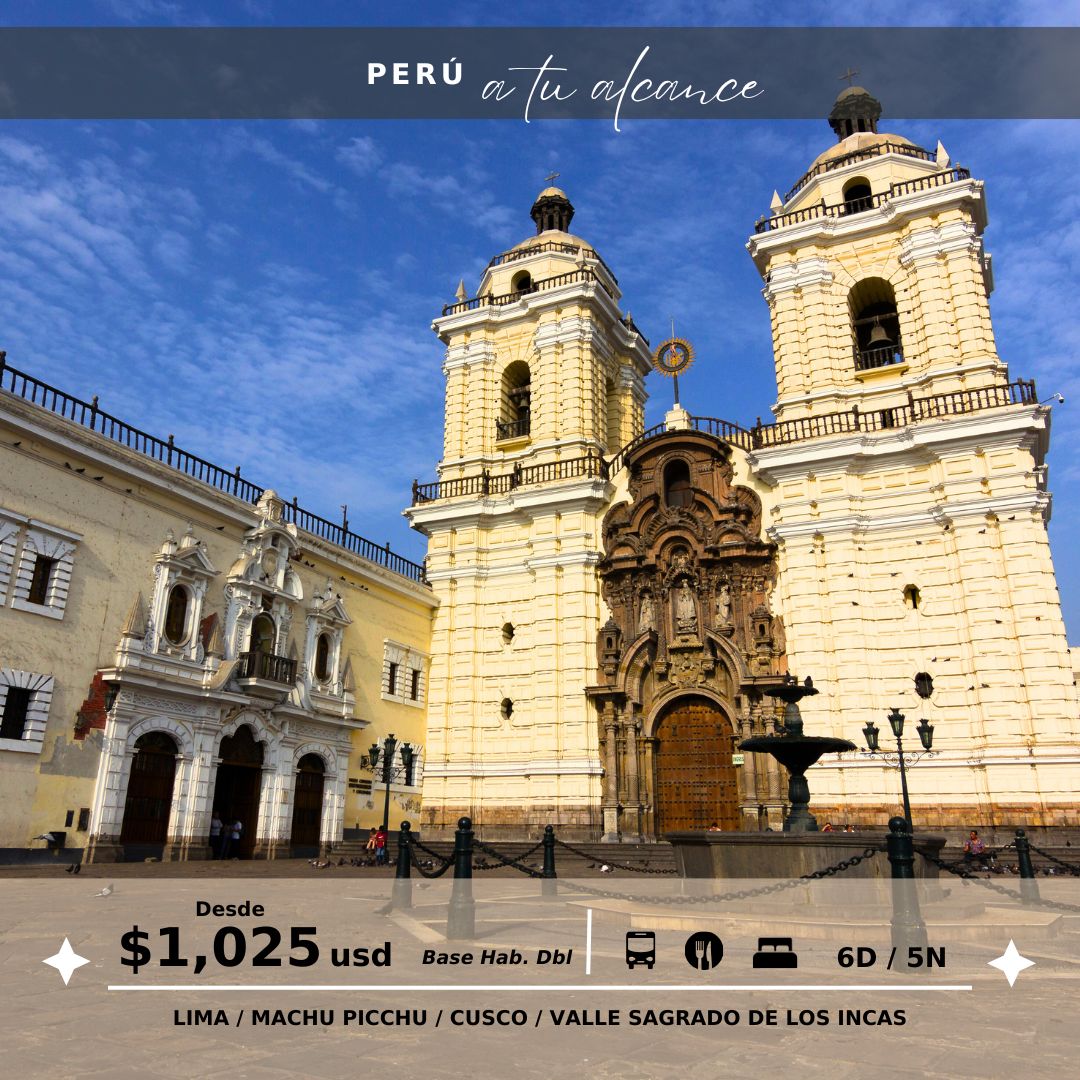 LIMA COLONIAL: Visitará el Centro Histórico de Lima, donde apreciará más de cincuenta monumentos y edificios coloniales, destacando el Paseo de la República, la Plaza San Martín, la Plaza Mayor, el Palacio de Gobierno, el Palacio Arzobispal, la Basílica Catedral, el Palacio Municipal entre otros.