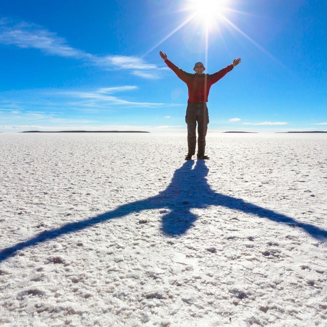 Para culminar este día, retornaremos sobre el salar para ver la puesta del sol en efecto espejo, un espectáculo natural que te dejará maravillado. Finalmente, nos dirigiremos al pueblo para el traslado al hotel. Alojamiento en Uyuni o Colchani.