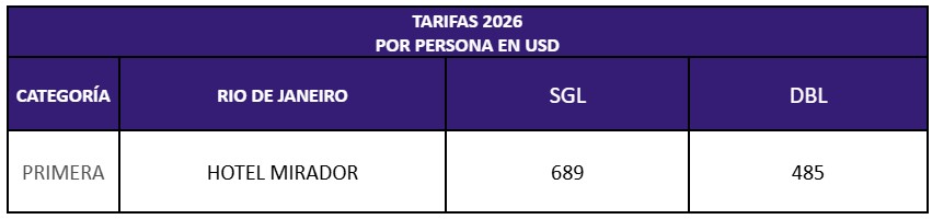 Desayuno. Disfrute de una experiencia inolvidable visitando el Pan de Azúcar, uno de los monumentos más emblemáticos de Río de Janeiro. Este tour ofrece impresionantes vistas panorámicas de la maravillosa ciudad, incluyendo sus famosas playas, imponentes montañas y la vibrante Bahía de Guanabara. Ideal para quienes desean apreciar la belleza natural y la rica historia de Río de Janeiro, todo en uno. Paseo en Bondinho – Suba al famoso teleférico que le lleva a la cima del Pan de Azúcar, ofreciendo una espectacular vista de 360 grados de la ciudad. Parada en el Morro da Urca – Antes de llegar a la cima, haga una parada en el Morro da Urca, donde podrá disfrutar del paisaje y aprender un poco más sobre la historia del lugar. Vista panorámica – Desde la cima del Pan de Azúcar, a 396 metros sobre el nivel del mar, admire vistas como la Playa de Copacabana, el Cristo Redentor, la Bahía de Guanabara y mucho más. Alojamiento.