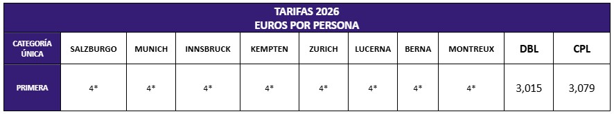 • Tarifas en EUROS por persona sujetas a disponibilidad al momento de reservar.